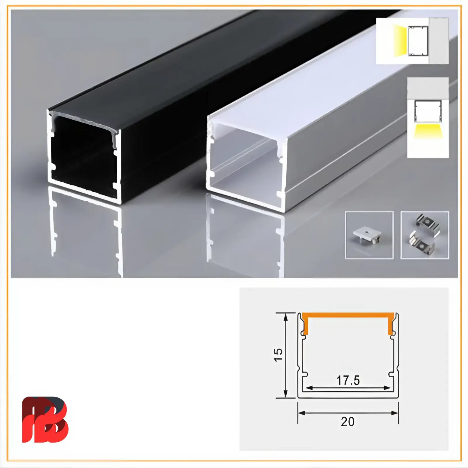 - Cấu tạo thanh nhôm định hình nổi BB-2015 : thanh nhôm đặc, nặng, bao gồm 1 thanh mika làm nắp chụp, dùng chiếu sáng hắt trần, hắt tường chiếu sáng hắt thạch cao.